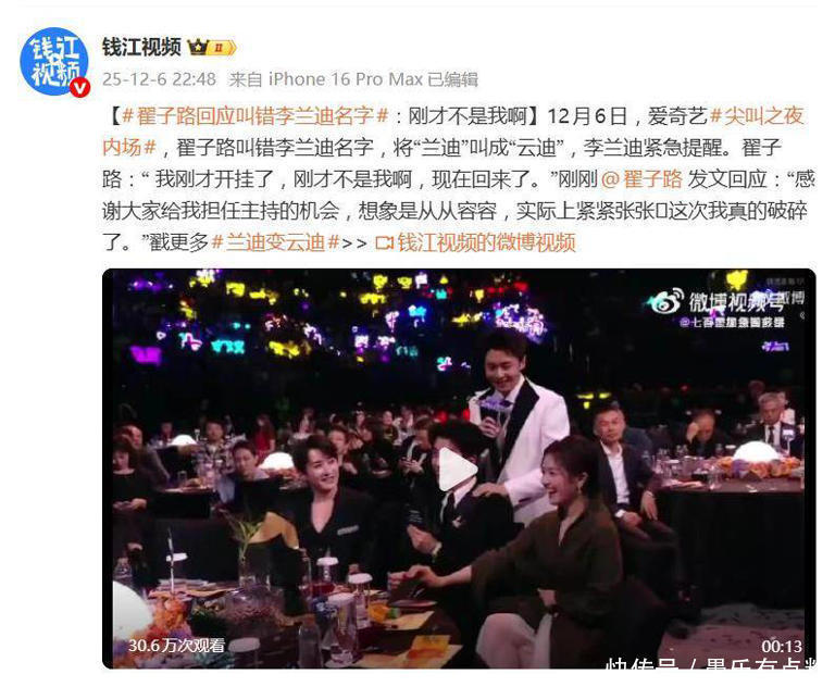翟子路口误现场!把李兰迪喊成云迪,发文回应称太紧张